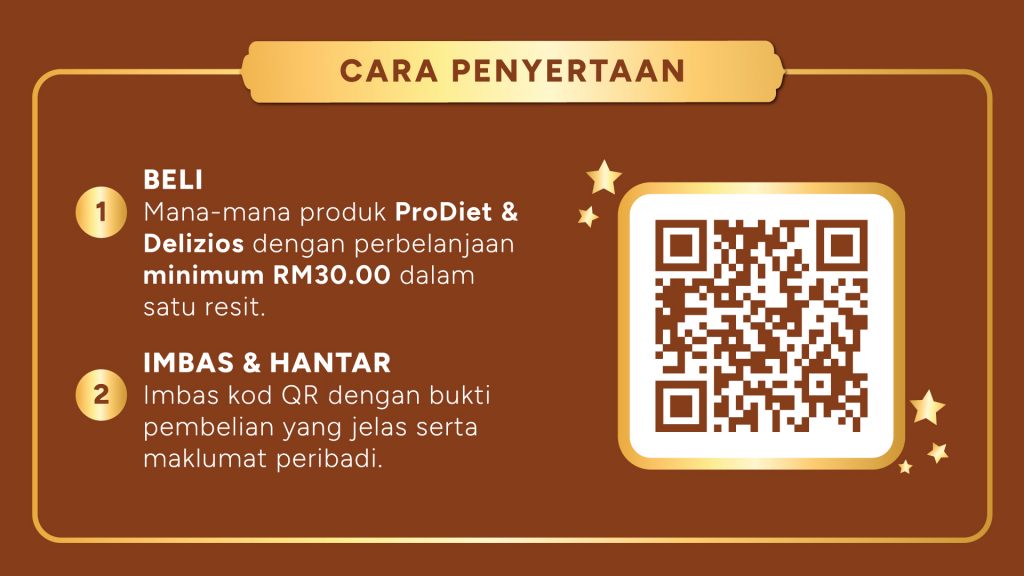 a. Purchase any ProDiet and Delizios products with a minimum spending of Ringgit Malaysia Thirty (RM30.00) in a single receipt from participating retailers (all Lotus’s outlets in Malaysia (“Participating Retailers”)) to accumulate points.